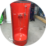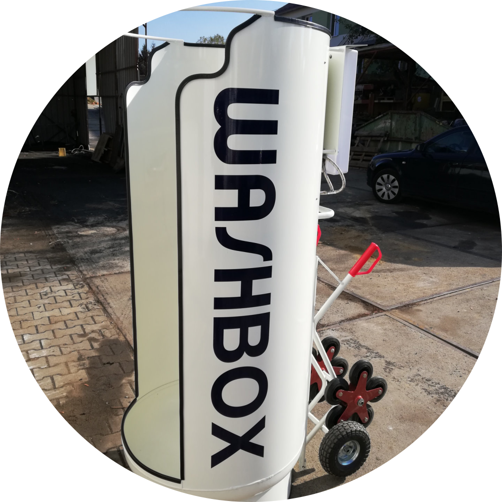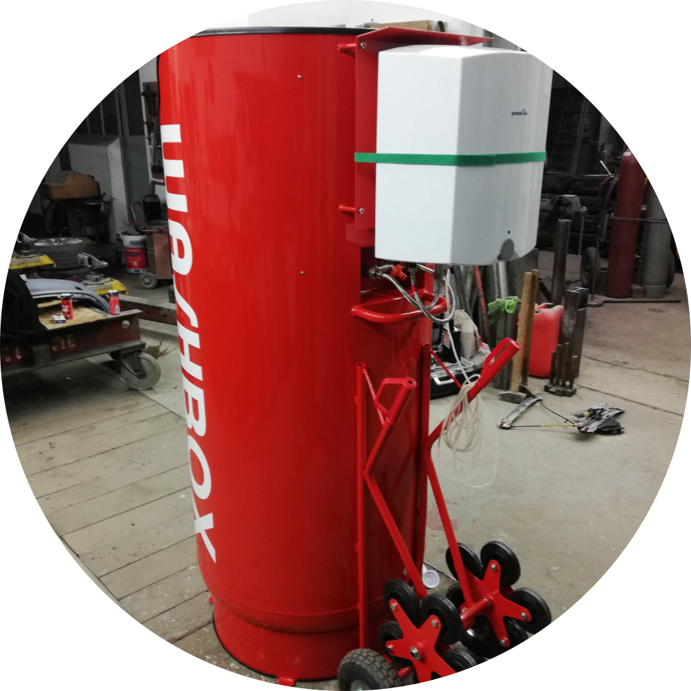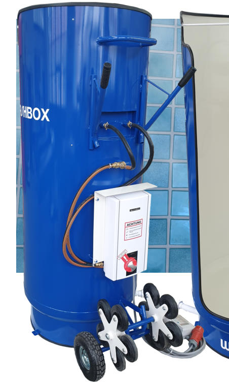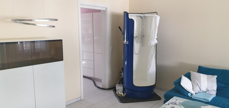 Mobile Dusche als indoor Lösung bei Umbauarbeiten, mobile dusche, washbox, mobile Toilette, Ersatzbad, Brandschaden, Wasserschaden, mobile Badanhänger